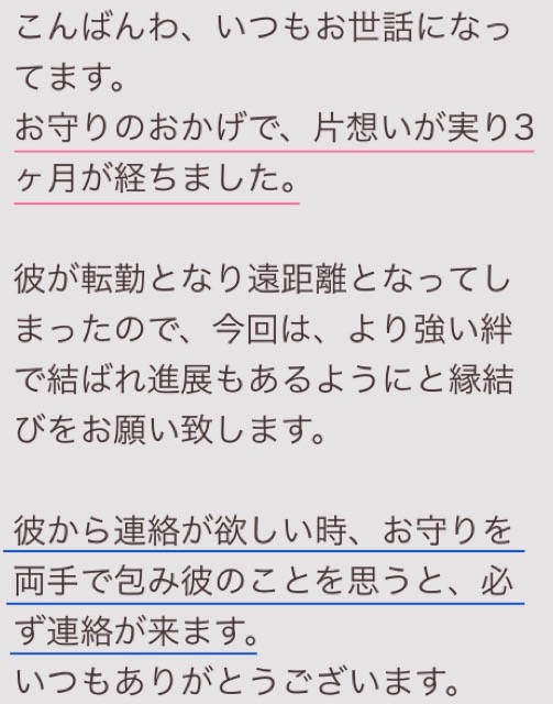 お守りのおかげで、片想いが実り3ヶ月が経ちました。